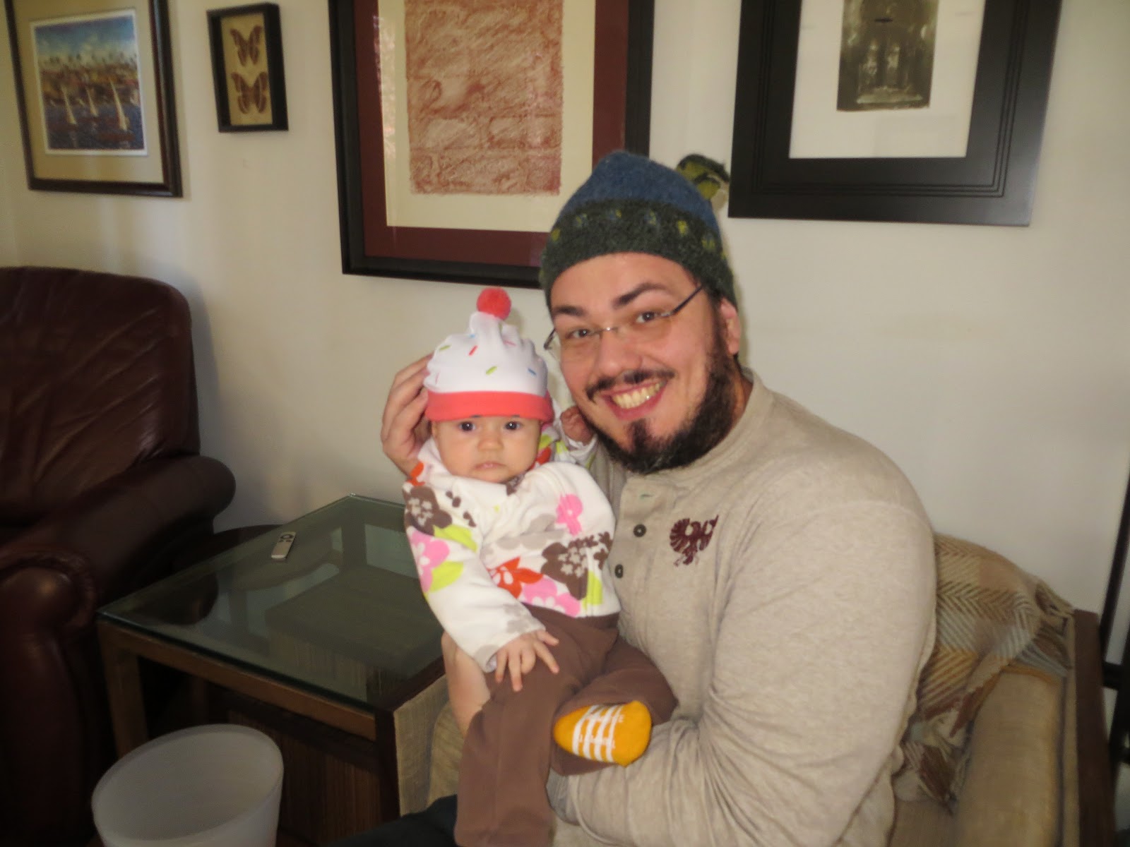 After a delicious meal and a giant baby bowel movement we retired to the living room to carry on conversation in slightly cooler climes.