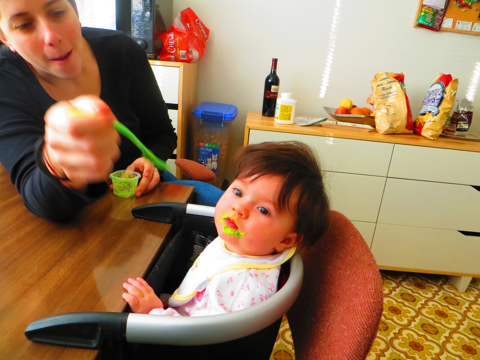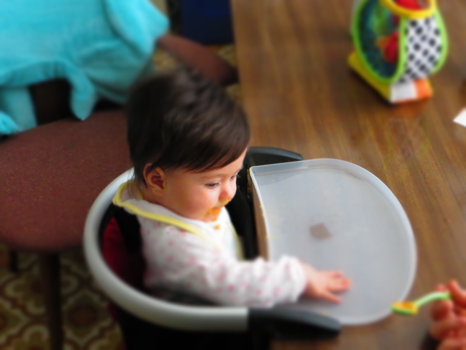 Not to freak anyone out but–turns out poop changes when you start eating “solid” food. Before she had one poop a day, same consistency, same time. We knew what to expect. Well, with the introduction of various purees we are seeing some changes. With these changes has come a tiny bit of diaper rash. We are combating said diaper rash with giving Mox diaper free time. Note the chux under her cute little midsection. All new parents: get some of these. They are awesome and cheap and save you a lot of clean up–especially in the early weeks of poop shooting and late night diaper changes.