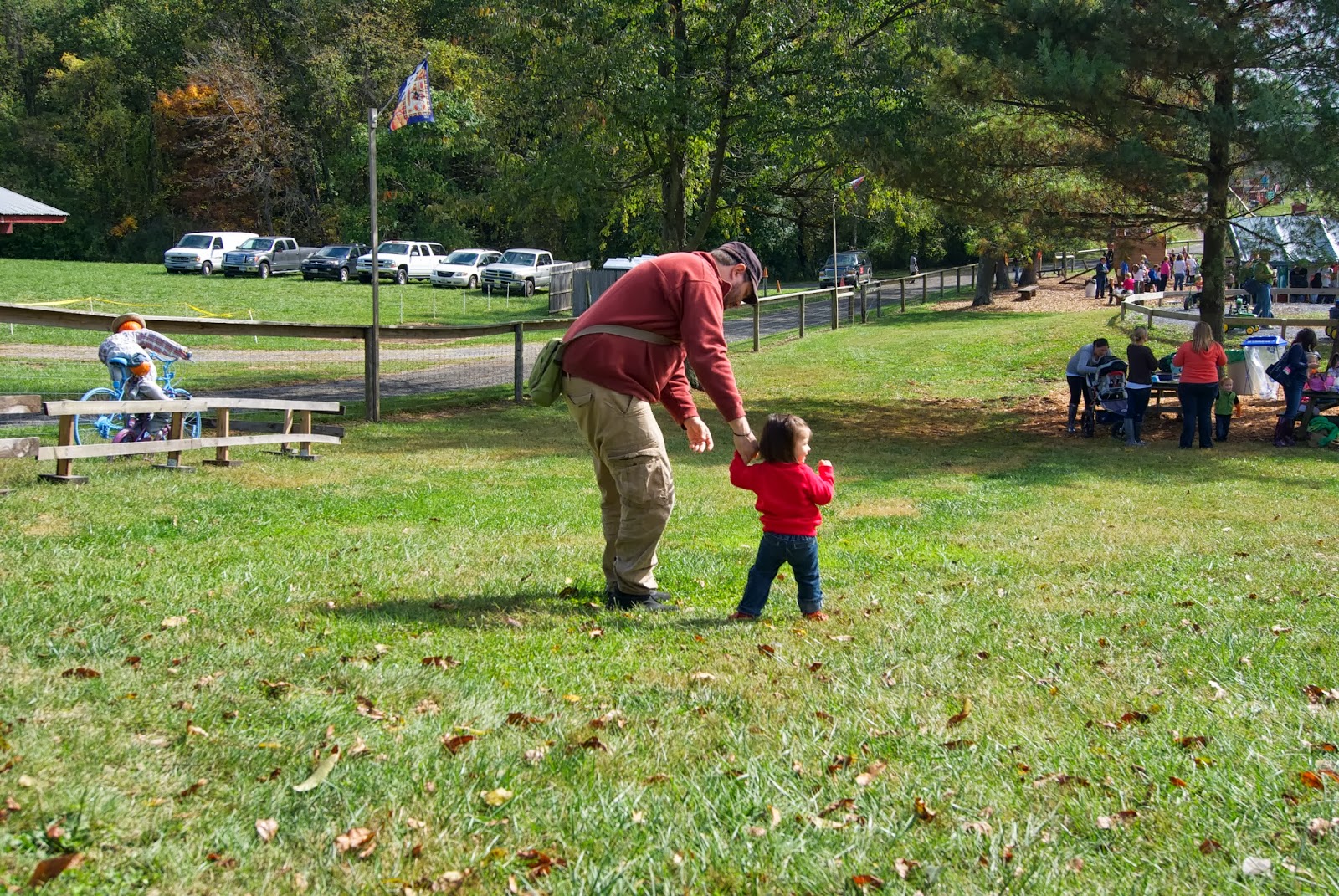 Today we took a family trip out to Butler Orchard. We went to a Fall Festival. Actually, we drove up to the festival, waited in line and I decided we should just get pumpkins–skip the festival. So we got up to the lady taking money and I said we changed our minds. As I was making a U-turn (and Strider was trying to hide his embarrassment I saw a petting zoo. So, after making the U-turn I made another one and we actually went. It was wonderful. Strider is a fabulous dad and a really patient husband. Luckily there was a different woman taking money when we got up to the front again so it was slightly less embarrassing for the hub.