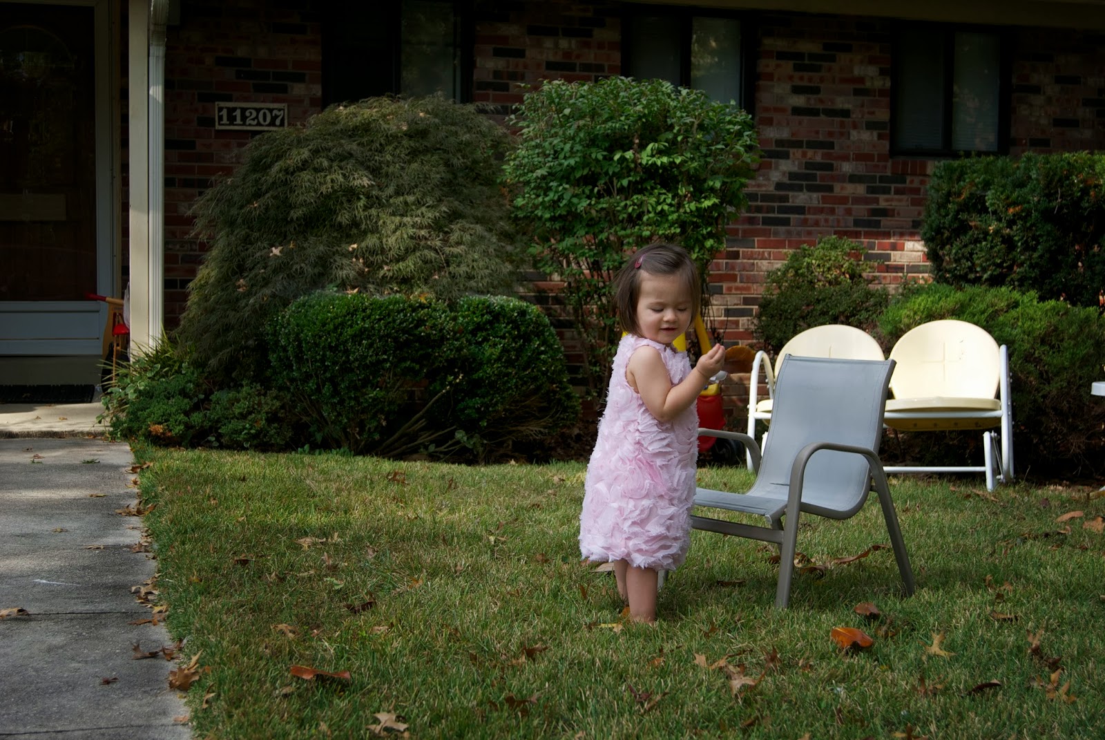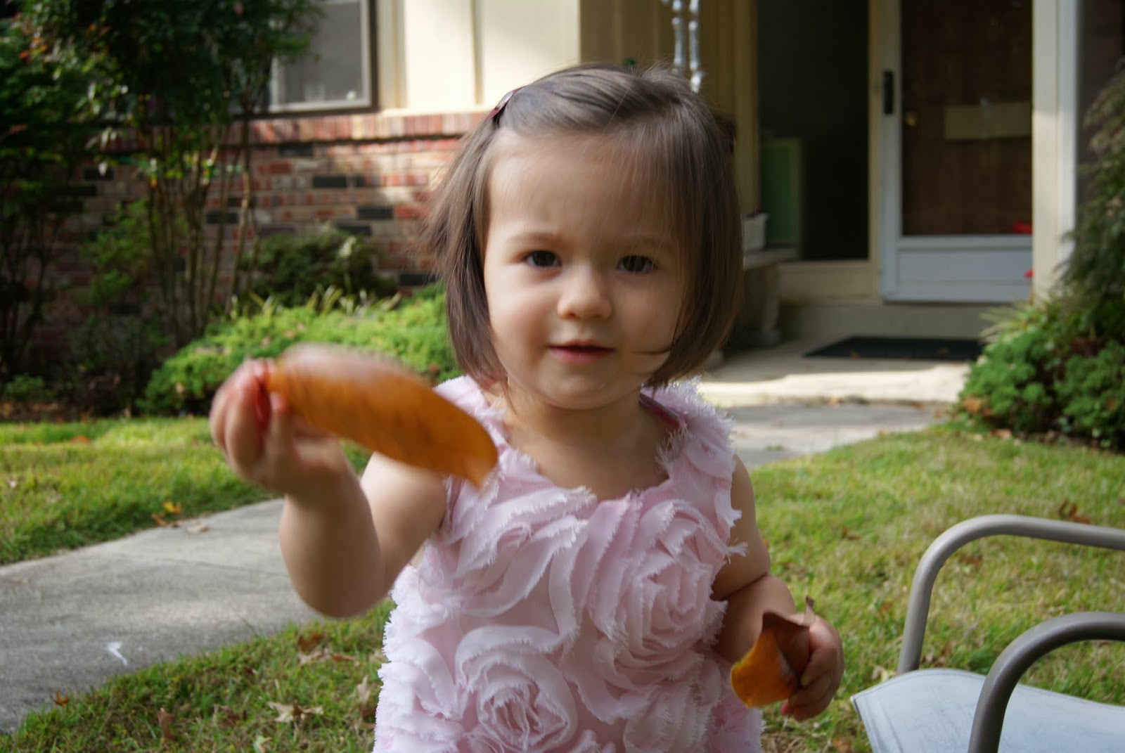 Moxie and Merrill were supposed to wear matching dresses this summer for an event. Well, it didn’t happen but Merrill and her family were together/amazing enough to send Mox her dress anyway. We don’t have many fancy occasions these days so playing with leaves got real fancy. Thank you so much to the Bowman’s for sending the dress.