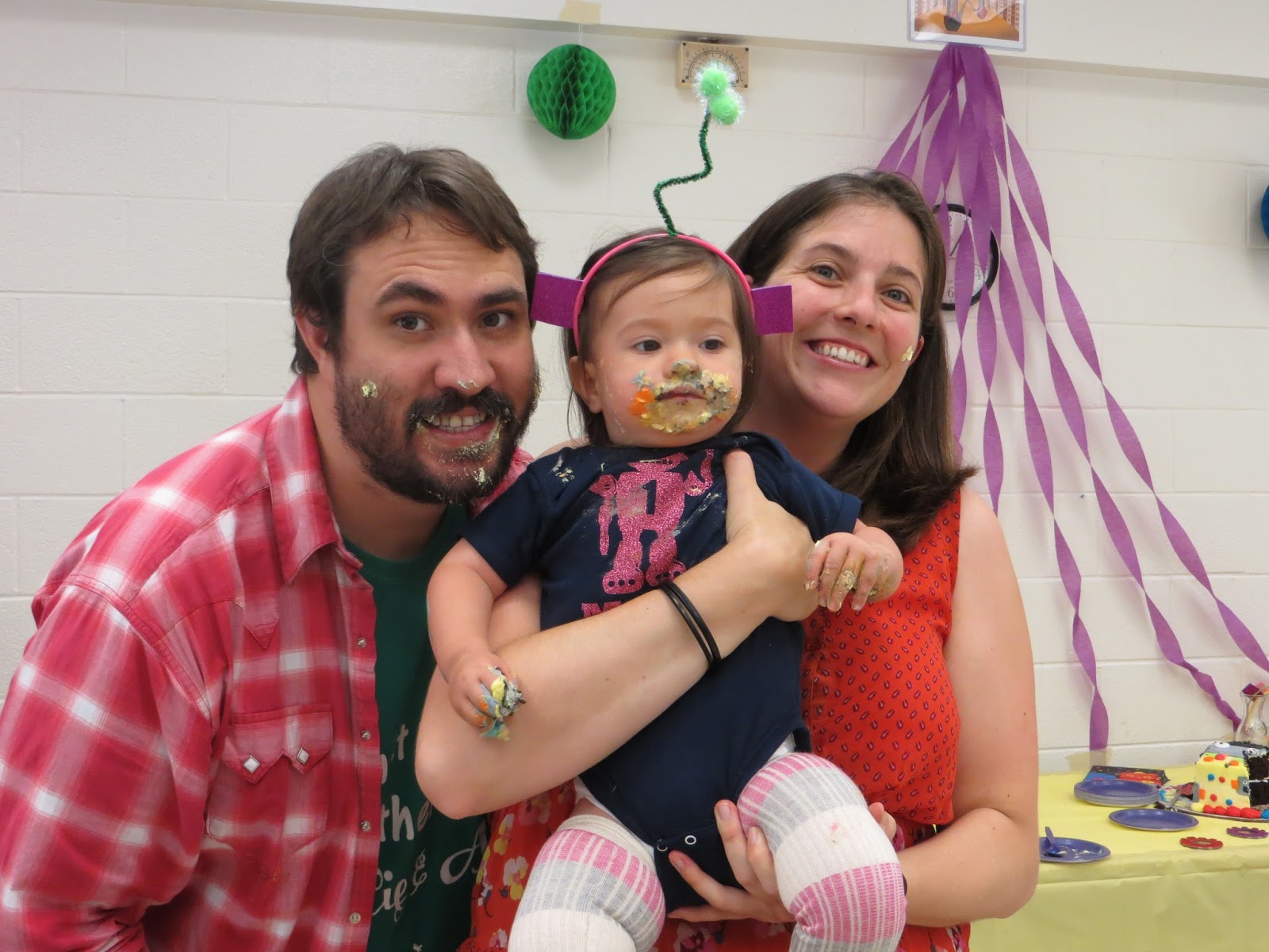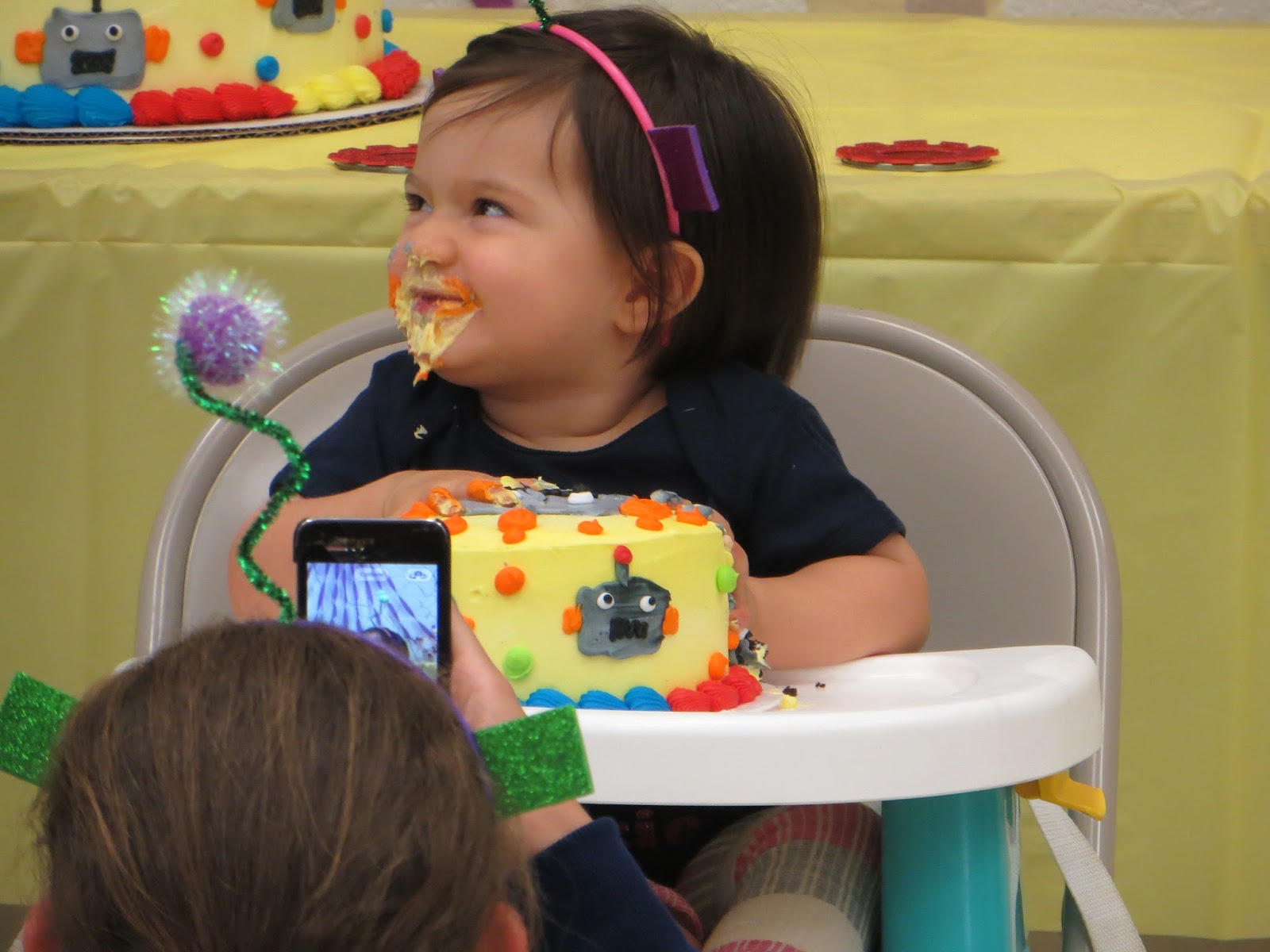 Takoma Mama 9 is the mother’s group I joined back in November. I just can’t say enough wonderful things about these women and their babies. Well, today we had the pleasure of celebrating the ~1st birthdays of all the babies. It was really fun. Strider and I made little onesies with fabric ties on them as party favors and helped decorate the train cars for all the babies. Super duper cute pants.
